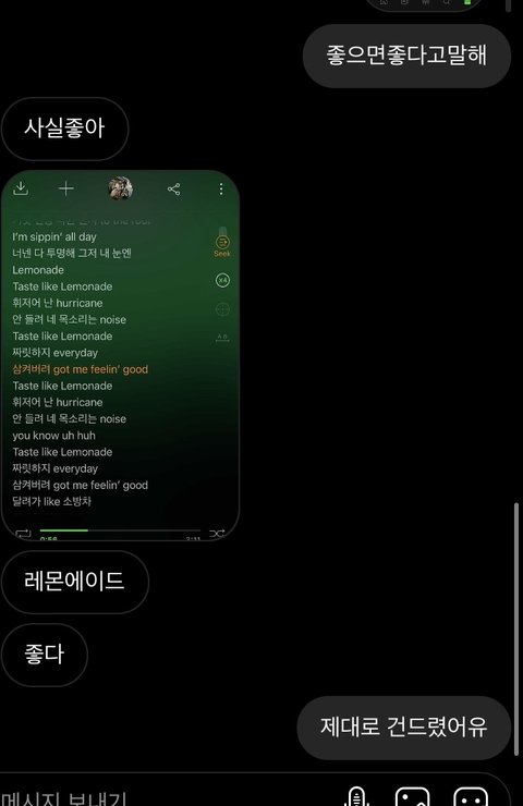 저렇게 답장 보냈더니 원래 아이돌 ㅂㄹ 안좋아하는앤데 레몬에이드 좋대ㅋㅋㅋㅋㅋ