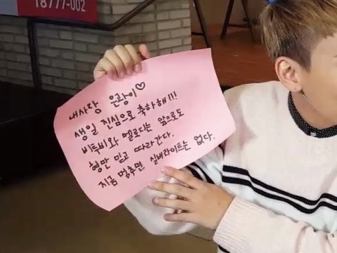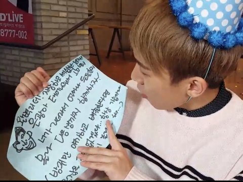 심심해서 옛날 브이앱 돌려보다가 응가 생일 때 멤버들이 롤링페이퍼로 편지 써준거 가져왔어