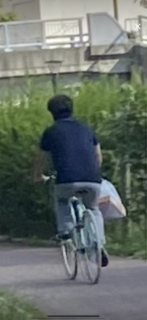 민트색(밝은 하늘색) 자전거 탔고 안경썼고요. 대낮이어도 산책로가 한적했습니다.