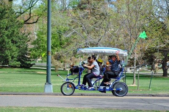 데이트족인데 참 재미나네요.의자부터 각종 살림살이를 이인용 자전거 뒤에 싣고 ,좋은 자리를 찾기 위해 이동을 하고 있습니다.