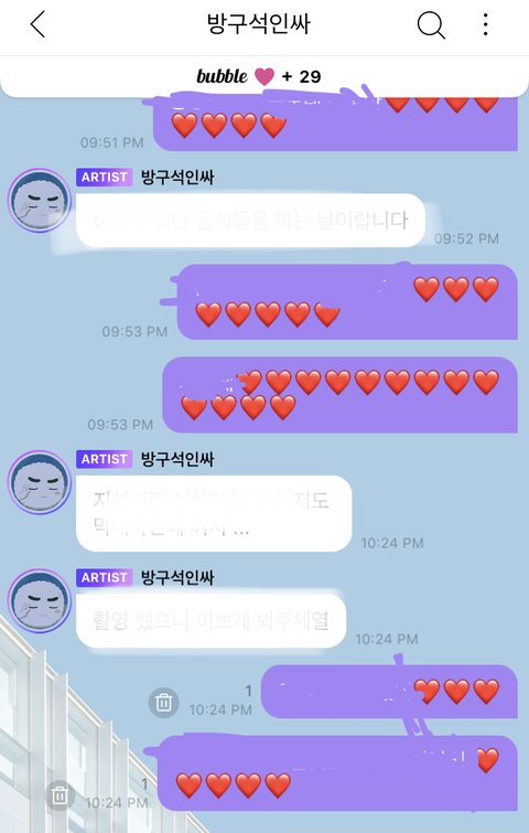 하트 폭탄 + 답장 한개 남기기 위해 두개만 보내기