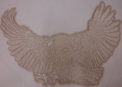 가죽에 독수리 디자인을 카빙(가죽 카빙)하였습니다.(마디샤)