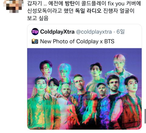 콜드플레이가 한국에 와서 방탄을 만나 콜라보 성사됨