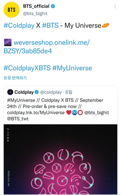 ⚠️9월24일 콜드플레이X방탄소년단 MY UNIVERSE도 많관부