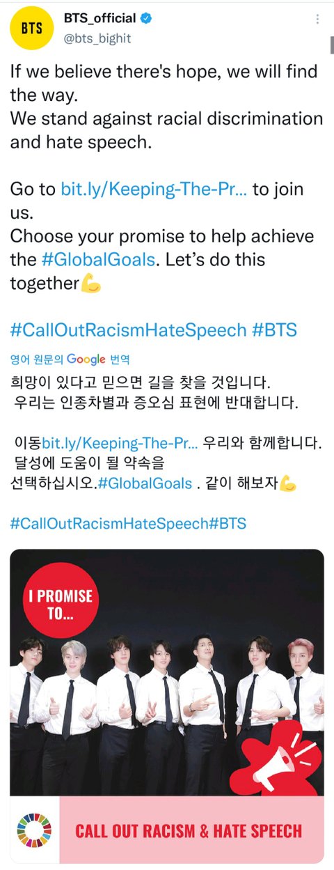 방탄은 젊은 세대들을 대표해 유엔에서 연설을 하고 인종차별 반대에 목소리를 냄