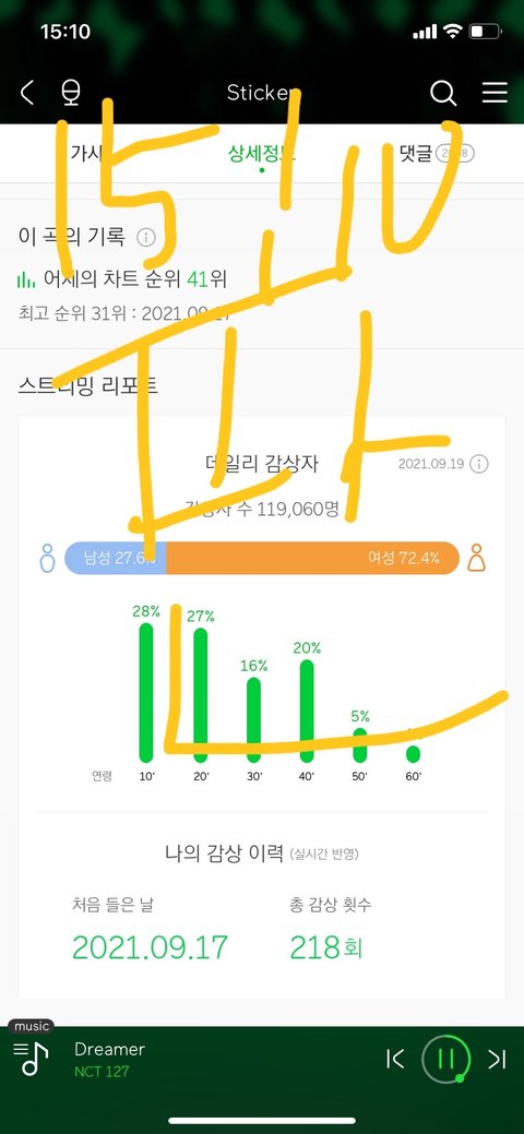 너네 스티커 스밍 몇회야?? 나 끊긴건가 보게