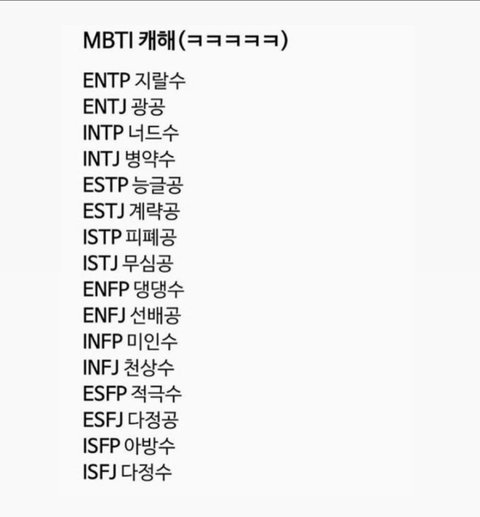 Mbti 캐해 이거 맞는거같음?