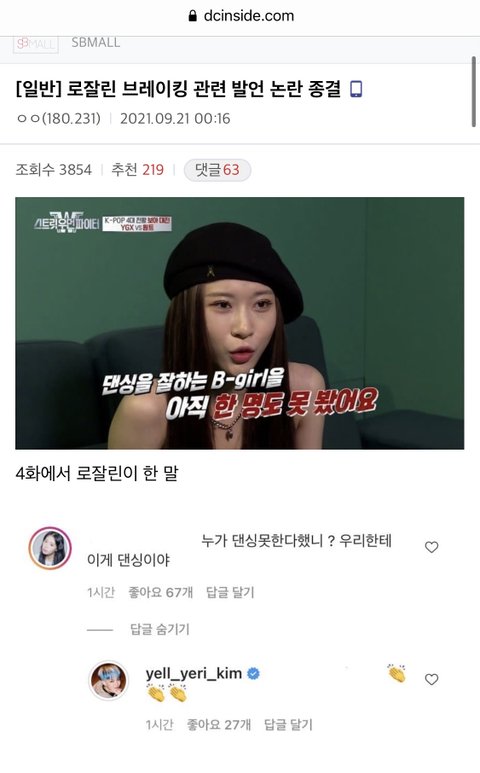 당연히 논란될 발언을 했는데 시녀들만 아니라고 죽어라 쉴드쳤으니ㅋㅋㅋㅋㅋㅋ 그리고 비걸, 비보이 본인들도 그렇게 생각한다면서 쉴드치는 애들도 있던데 그 장르를 하는사람이 말하는거하고 아닌사람이 말하는거 하고 같음?? 이과 탑인 애들이 저희는 국어를 좀 못해요ㅎ 이런거랑 문과 탑인 애들이 이과 탑 쟤네는 국어 못해요ㅎ 이 두개가 같음?? 로잘린 저 발언은 누가 봐도 비걸 비보이 무시하는 잘못된 발언이었음