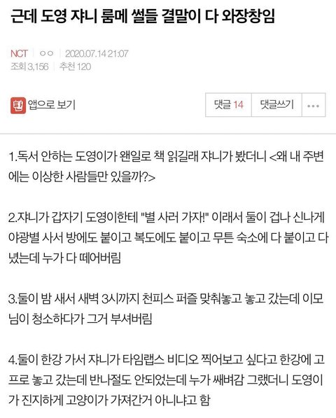얘네 룸메 와장창썰들 개웃기네ㅋㅋㅋㅋㅋ