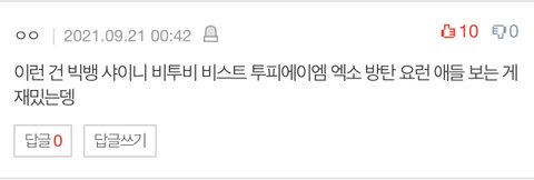 빅뱅 샤이니 투피엠 비스트 하이라이트 비투비 엑소 방탄 bts 인피니트 비원에이포 b1a4 씨엔블루 슈퍼주니어 소녀시대 동방신기 원더걸스 씨스타 걸스데이 에이핑크 아이유 빅스 뉴이스트 틴탑