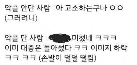 댓글 pdf 따려고 답댓글로 pdf 표시하니까 2ㅗ현병이다 정신병원가라 자살해라 하면서 아이유팬 나 콕 집어서 저격히고 여돌무대 글에서도 또 그러더라ㅎㅎ? 고소가 진짜 안 무섭구나...