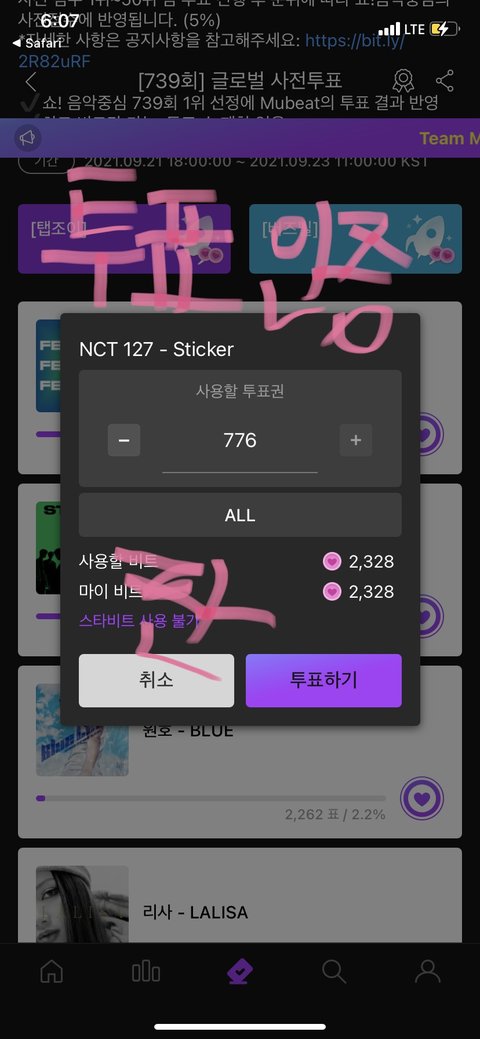 뮤빗 투표했다앙
