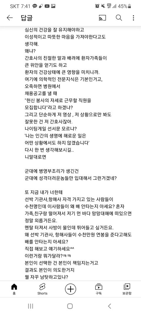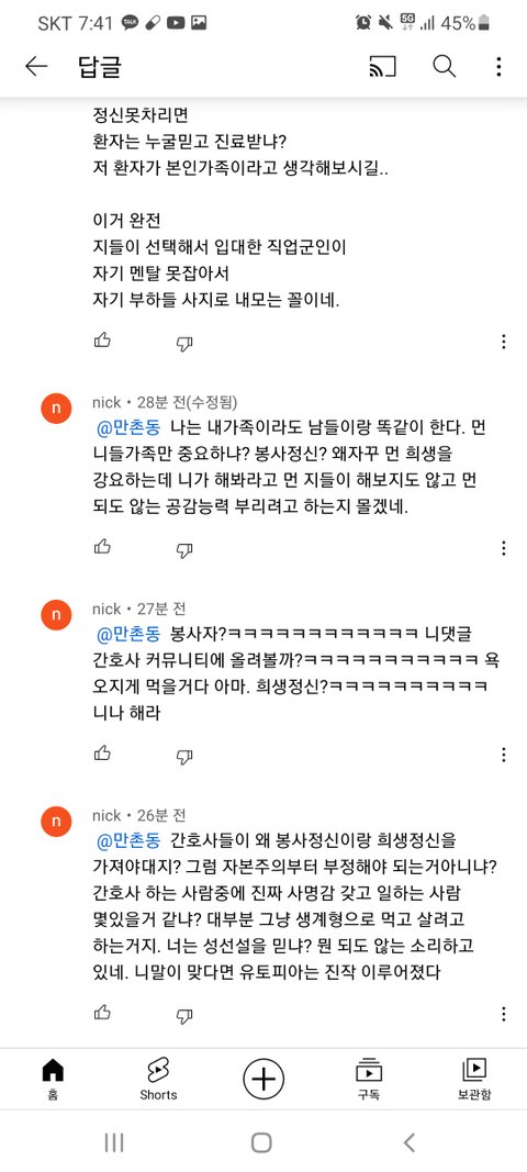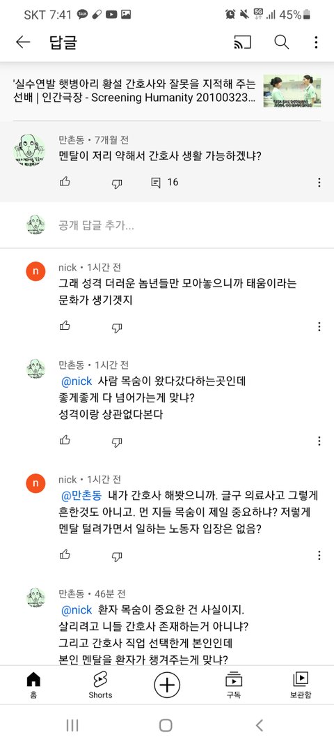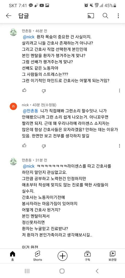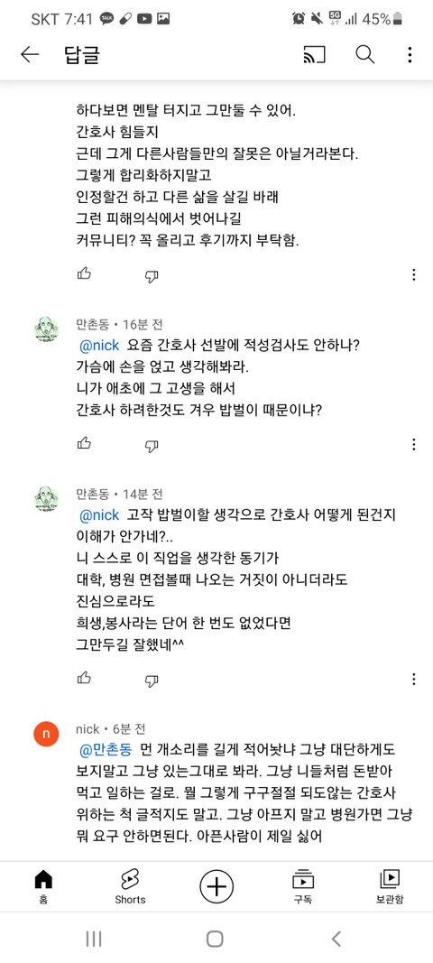 저런 말을 하는사람이 간호사였다니; 충격입니다.