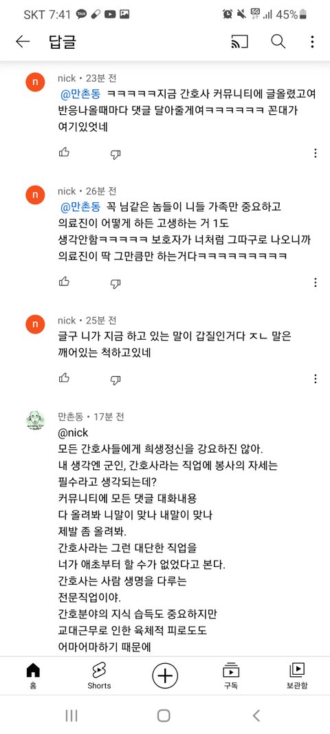 모든 간호사들 욕먹이는 것 생각은 못하고