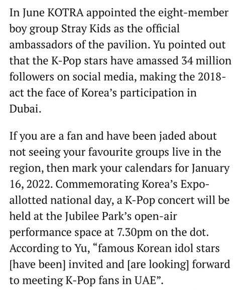 뭐? 스키즈는 대한민국과 케이팝을 대표하기 위해 두바이에 갈게?