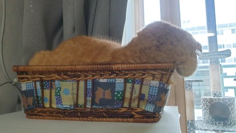 첫째 나리가 틈만 나면 들어가있는 바구니인데 이리눕고 저리눕고하니 옆구리 터졌어요;;ㅋㅋ