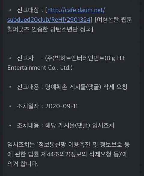 정국만 고소해주고 기사 삭제해주고 여초 게시글 삭제해줌 하이브 최애인가?