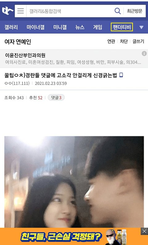 여초 커뮤 여론 주도하는 애들은 쟤네임. 당장 같은 학폭 논란 중에서도 소송에서 더 불리하게 돌아갔거나 인정한 케이스도 커뮤에서 수진보단 유한데, 여러 이유가 있지만 그중 하나는 여연갤이 걔네들을 수진보단 덜 싫어하기 때문이라고 봄. 오히려 소송 불리하게 돌아간 다른 연예인에 대해서 좋아하는 글도 쓰더라.