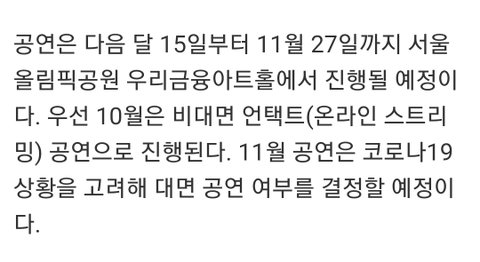 (10월 15~17일 온라인 스트리밍 중계 공연, 9월 말 티켓 오픈이래!!)