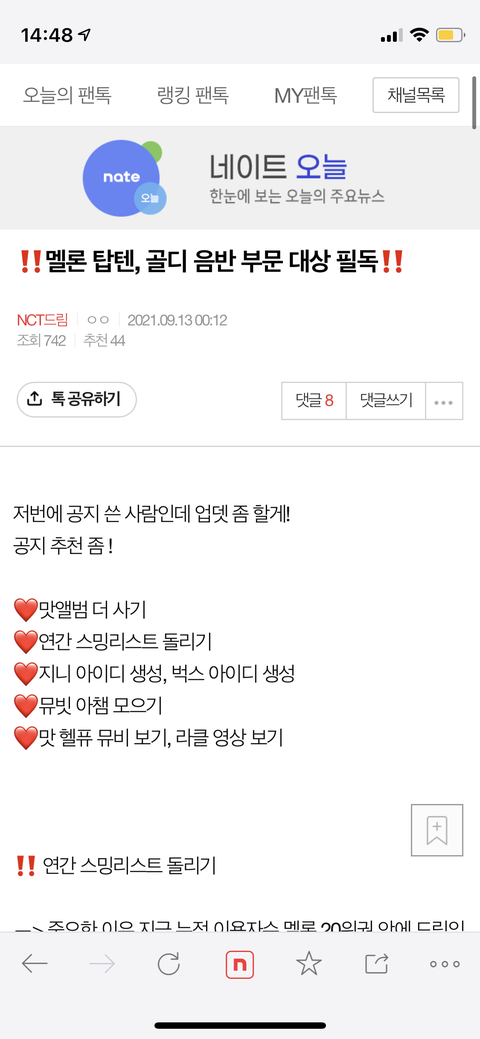 공지 수정 했어 얘들아 멜뮤 탑텐 골디 등등
