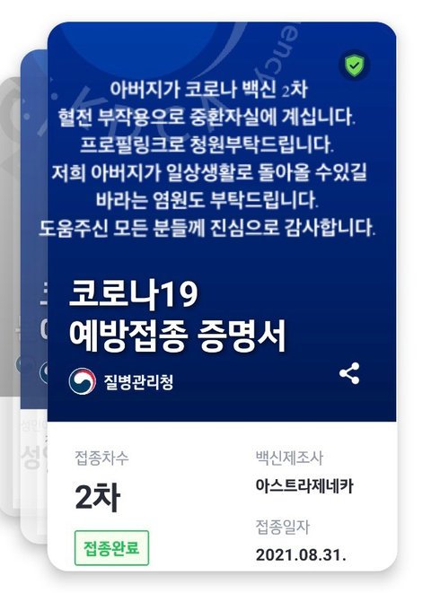 아버지는 8/31에 아스트라 제네카 2차접종 완료후 줄곧 계속 잠이 안오고 두통이 극심하다고 호소 하셨습니다.