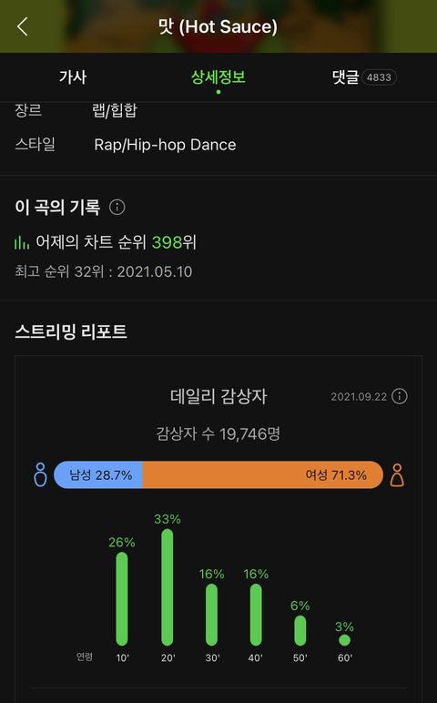 우리 맛 (Hot Sauce) 순위랑 감상자수