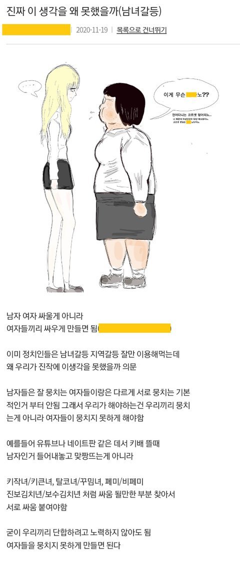 난 150대의 여자들이 후려쳐진다는걸 판보고 처음 알았음 ㅋㅋ 정작남자들은 키에 큰 신경안쓰는데. 너무 작거나 너무 크거나 하지않는 이상. 너무 작다는 기준은 150 초반대 얘기고 남자들은 키가 작으면 작은대로 귀여워서 좋고 키가 크면 큰대로 늘씬늘씬해보여서 좋고 한데 왜 판에서만 이런 분위기가 형성된건지 이해가 안돼.