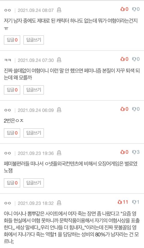 난 개인적으로 오겜이 재밌었는지를 떠나서 이번 오징어게임 세계적으로 흥행한거 너무 고맙고, 이번에 오징어게임이 많이 이슈된만큼 페미들 창작물 검열하고 여혐타령하는거 사회적으로 욕먹는 분위기 조성되고 각종 플랫폼에서도 페미들 오바쎄바 떠는거 절대 들어주지 말아야한다고 생각함ㅋㅋ 아니 공포, 호러, 서바이벌, 스릴러장르 좋아하는게 남자들뿐임? 지들 맘에 안드는 여성 캐릭터 나오면 검열하고 여혐타령하고 별 그지같은 현실성도 없고 레즈착즙할만한 캐릭터만 여성서사라고 빨아제끼는거 개극혐 하는 여자들도 천지임ㅋ 페미들 지네편 안들어주면 한남이라하고 여자인증하면 한남 못잃는 개념녀라고 비꼬고ㅋㅋㅋ어쩌라는거ㅋㅋㅋㅋ 한남이고 나발이고 성인들을 위한 컨텐츠 검열해대지마시라구요ㅋㅋㅋ 애초에 오징어게임이 사회의 부정적인 면을 드러내어 알릴 목적으로 만든 사회고발극도 아니고, 관객의 공포심리를 자극하며 재미를 줄 목적으로 제작된 스릴러물인데 뭔 다큐를 바람? 살다살다 극중에서 여자 맞고 죽는다고 여혐 타령하는거보고 할말잃음. 이젠 영화에서 연쇄살인마 나오면 한명한명 죽일때마다 누가 일침날리면서 비판이라도 해야하나봐 ㅋㅋ 진짜 트위터같은데서 페미들끼리 고여 썩다가 머가리 다 돌아버린거같음. 그렇다고 영화내에서 범죄를 미화하거나 주최측이 말하는 공정이 진정한 공정이다 말하는것도 아니고, 사회고발극을 표방하며 실제 사건을 유흥거리 삼은것도 아니고 정상적인 사람들은 다 영화속에서 말하는 공정이라는게 얼마나 모순적인지 알고 있음. 물론 일베나 페미처럼 모든 결론이 상대성별 혐오로 이어지고 현실까지 그 혐오를 끌고오는 정신병자들 있는거 사실인데, 그 정신병자들때문에 일반인들이 온갖 컨텐츠 다 검열당하고 살아야함? 외국타령도 웃긴게 니네들은 외국 영화, 드라마 안봄? 한국만큼 보수적이고 검열심한 나라도 없어 ㅋㅋㅋ 이제야 이런 장르 한국에서도 괜찮게 나오기 시작해서 반갑고, 오겜이 흥행한만큼 앞으로도 계속 나와주길 바라는데 이와중에 페미들 똥싸지르는거 개토나옴.