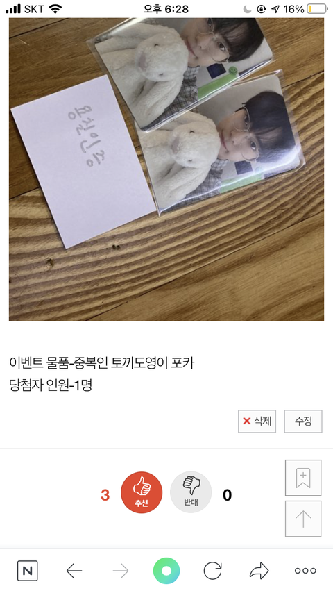 2차 공구탄 거 인증만 하면 추첨으로 도영이 포카 하나 줄게!
