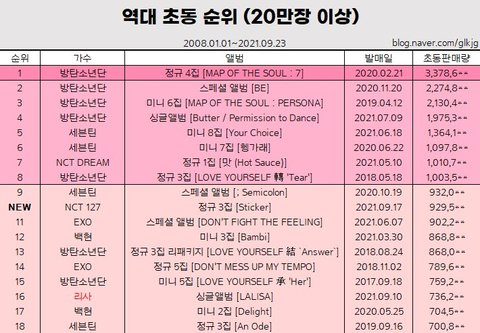 일앨 한국가수중에 방탄 다음으로 잘팔지 않음? 저번에 일앨 50만장넘게 팔앗다는거 본거같은데 일본중국이런팬이 많나보지