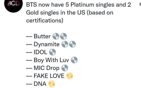 지금까지 5곡의 플래티넘, 2곡의 골드 보유