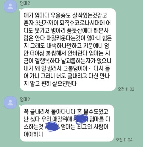 주작이라는 분들 때문에 엄마랑 한 카톡 사진 첨부합니다.