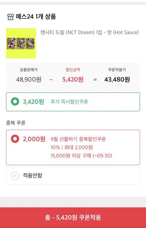 자기가 가지고 있는 카드할인까지 ㄱㄱ 체크카드 됨