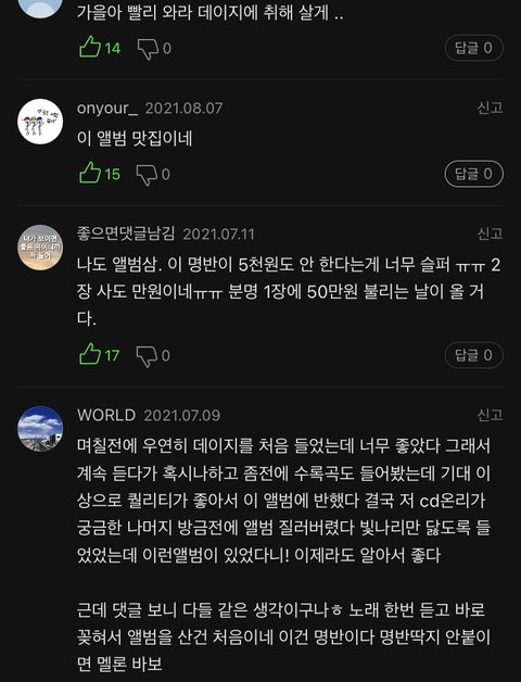 명반딱지 붙어야된다는 말 개많고 한번이라도 들은 사람들은 음악성 인정하니까 너무 뿌듯해