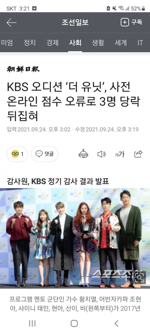 더유닛 나갔었던 아이돌 팬덤 사이에서는 조작인거 어느정도 예상 하고 있었어. 나 그날 최종 순위발표식 생방송할때 방청석에 있었는데. 어떤 한 멤버가 생각지도 못했던 순위에 호명됐을때, 호명된 당사자 포함해서 거기 있었던 출연자들, 방청객들 다들 벙쪄서 순간 분위기 겁나 싸해졌었거든. 카더라 이긴 하지만 그때 돌았었던 말들은 한그룹에 한명만 뽑는거 였단 말도 있었고. 이걸 이제서야 이렇게 기사화 한다는게 참......... 씁슬하네.ㅠㅠ