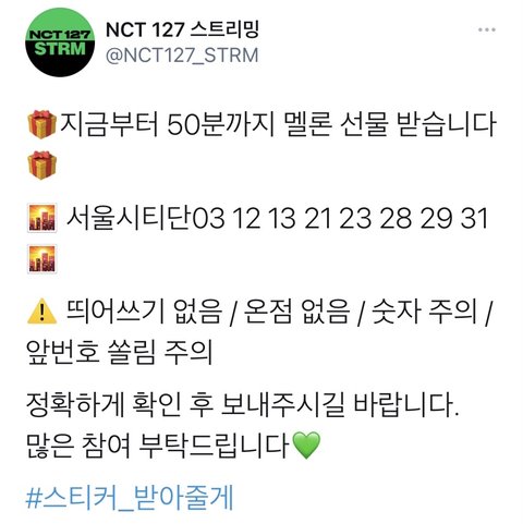 스밍팀 50분까지 멜론 선물하기‼️‼️‼️