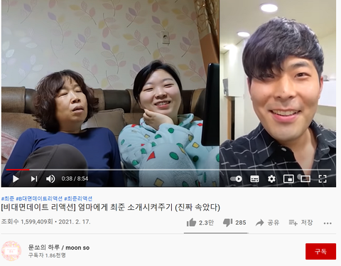 문쏘가 본인 엄마한테 최준 영상통화 영상을 보여주면서