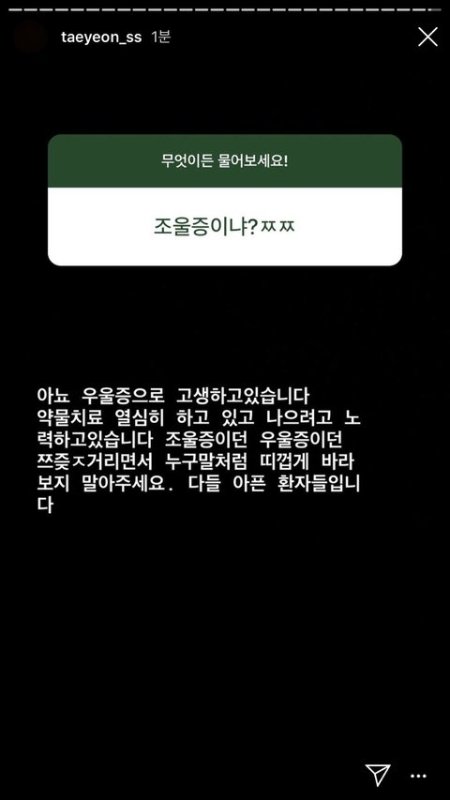 헐 소녀시대 태연 우울증 치료받고 있었구나