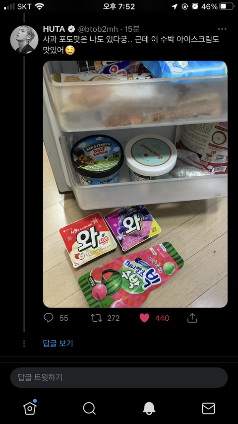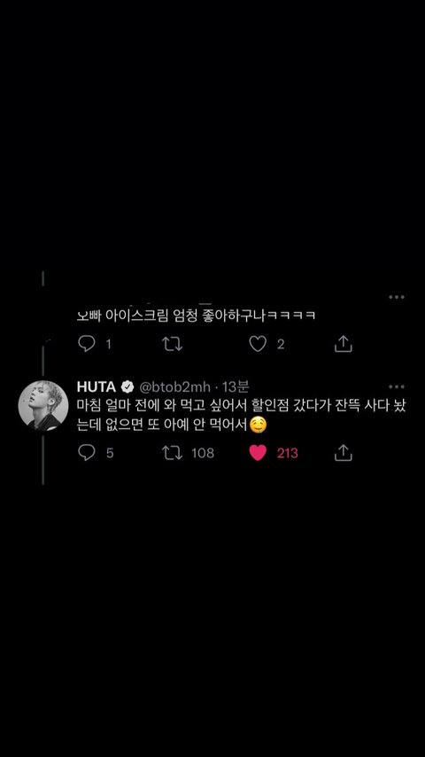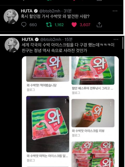 이거 약간 본인은 지금 괜찮다고 걱정하지 말라고(?) 올리면 멜로디들이 더 걱정할까봐 일부러 개구지게 어제 라방 때 한 아이스크림 얘기 올려서 본인 안부+와 수박 안부 얘기하는것 같지 않니.,,? 착한 허타찡ㅠ 내가 좋아하는 아티스트한테 이렇게 사랑받는거도 처음이다,, 갬덩ㅠ