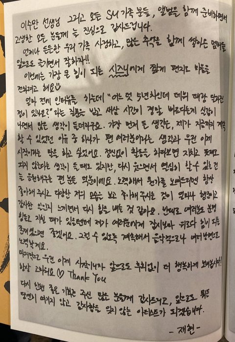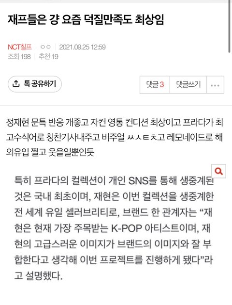 드라마 찍을때도 하루 두시간도 못자면서 127이랑 2020스케 다 뛰고 온콘 스케 다하고 아파서 빠진멤버 무대 대타까지 시간쪼개서 했는데 억까로 주작톡선 이틀에 한번 올라오며 2020년에 개쳐맞은게 정재현임…재프들은 이런거 걍 이제 덤덤함