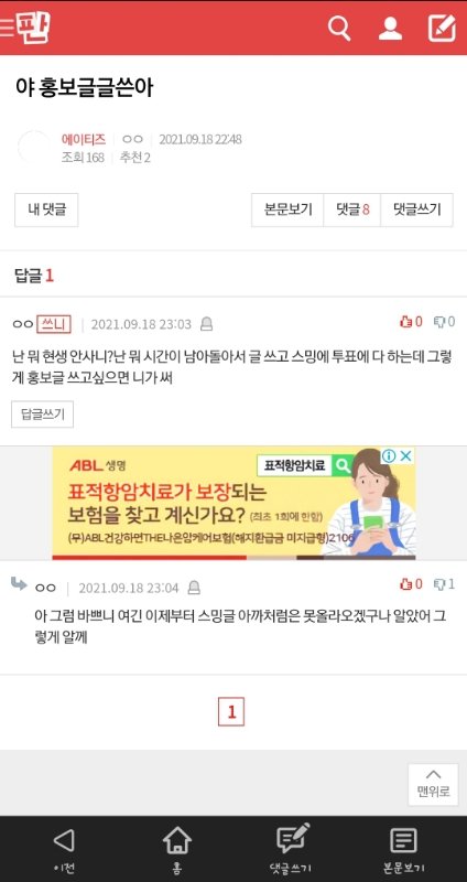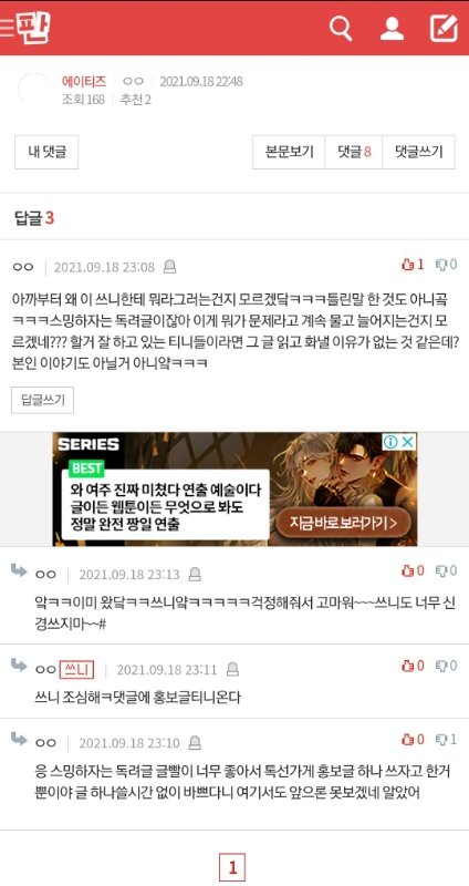 야 내가 너한테 글 남겼는데 봤니? 너 이 팬톡 망하게 하려는 거같음