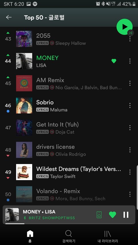 리사 솔로 스포티파이 음원 순위