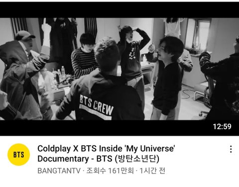 그 다큐 처음부터 끝까지 다 봤는데 크리스 마틴이 방탄을 단순히 틴에이저들에게 인기 많은 보이밴드로만 여기지 않아서 더 의미가 있다고 여겼음 사전에 방탄 노래를 많이 찾아본 티가 나더라고 방탄이 어떤 메세지를 노래에 담고자 하는지도 알고 있고 댄스 영상도 많이 찾아봤다고 댄브 파트도 넣었다며 방탄 멤들한테 말했던데 정말 이 협업에 진심인 거 같더라