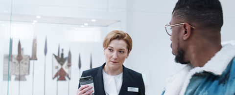 직원이 커피 후르릅 으음 휘핑 크림 후르릅챱챱!