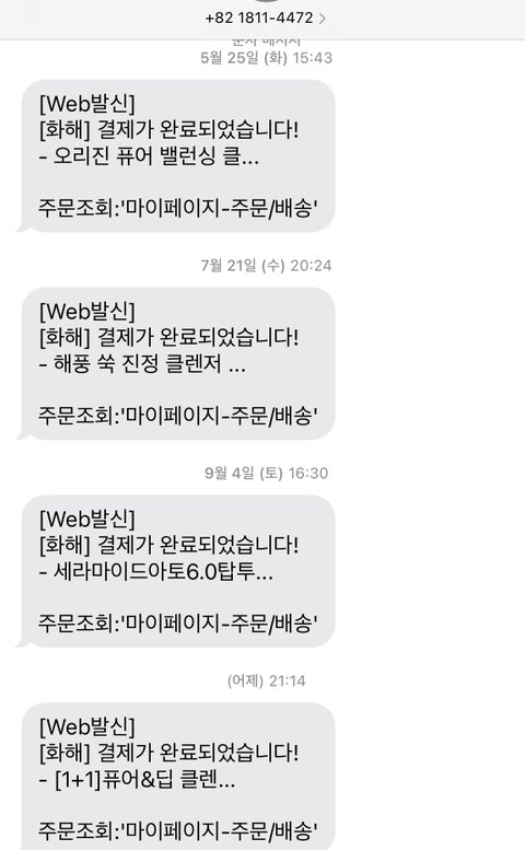 5월부터 가입한적도 없고 주문한적도 없는 쇼핑몰에서 결제완료되었다는 문자를 수신하고 있습니다