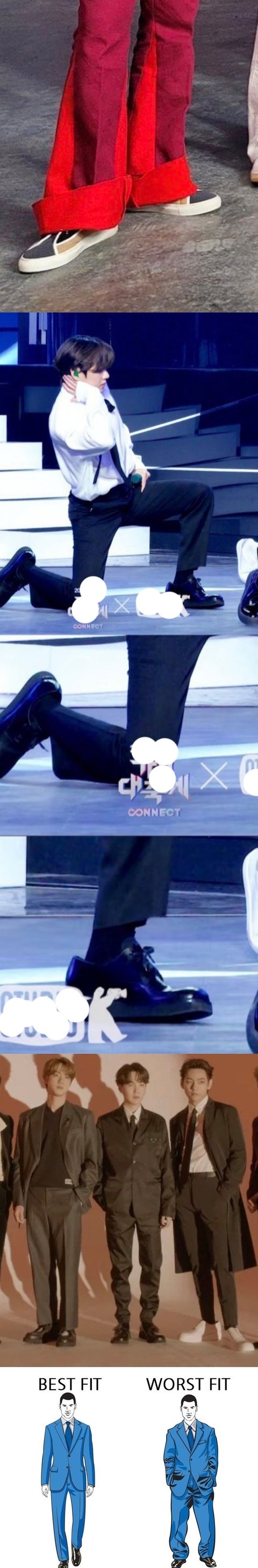 신발핏 바지핏이 이정도면 코디가 아니라 안티같아 그리고 늦덕인데 코디 실력없다고 까면 일부가 이쁘다며 먹금시키던데 그래서 항상 코디 이모양인듯 (사이즈나 바지핏 안맞는거랑 지금 코디 바뀐 이후로 신곡 나올때마다 컨셉 구분없어지고 매번 똑같은 나팔바지 슈트 반복)