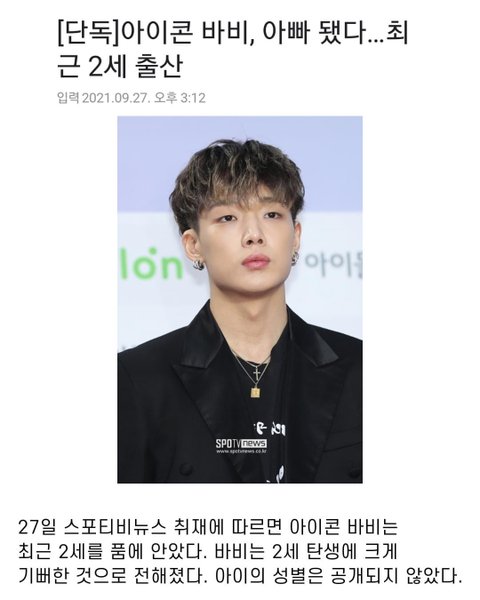 ㅅㅊ 아이콘 바비 2세 출산 YG