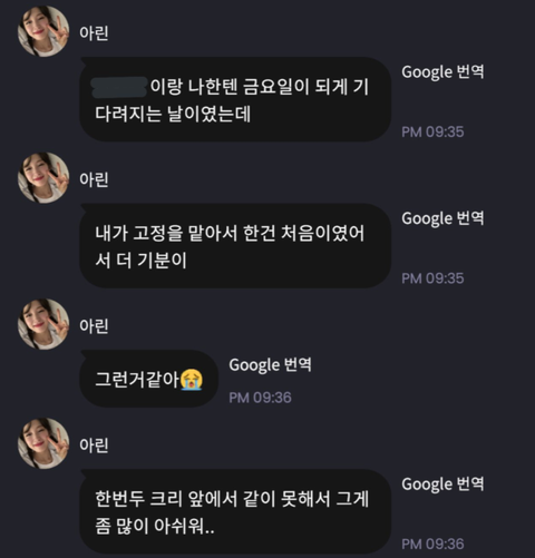 모자이크 ㅅㅂ이냐고 묻는 댓글 있어서 쓰는건데 프메 내가 듣고싶은 이름 설정 자기가 할수있음 저 캡처한사람 자기 이름? 애칭? 가린거같음
