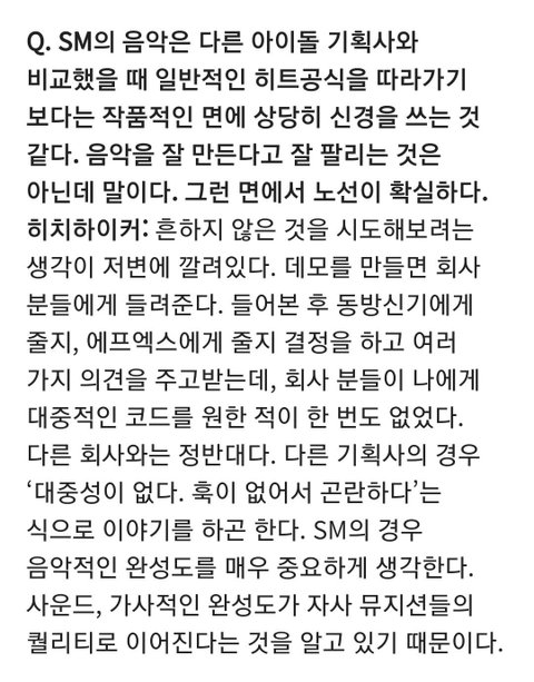 스엠 최대 장점 곡에 돈을 안아낀다.... 노랴 자체의 대중성은 조금 부족할지라도 가장 실험적인, 앞서나가는 음악을 한다는거.. 에펙 노래 십년전꺼 들어도 전혀 안촌스러운 이유 엔시티 5-6년전 노래는 지금에야 시대에 맞는거 같음ㅋㅋㅋ