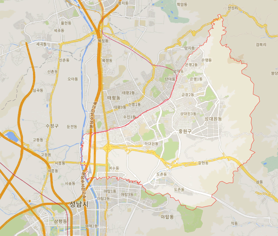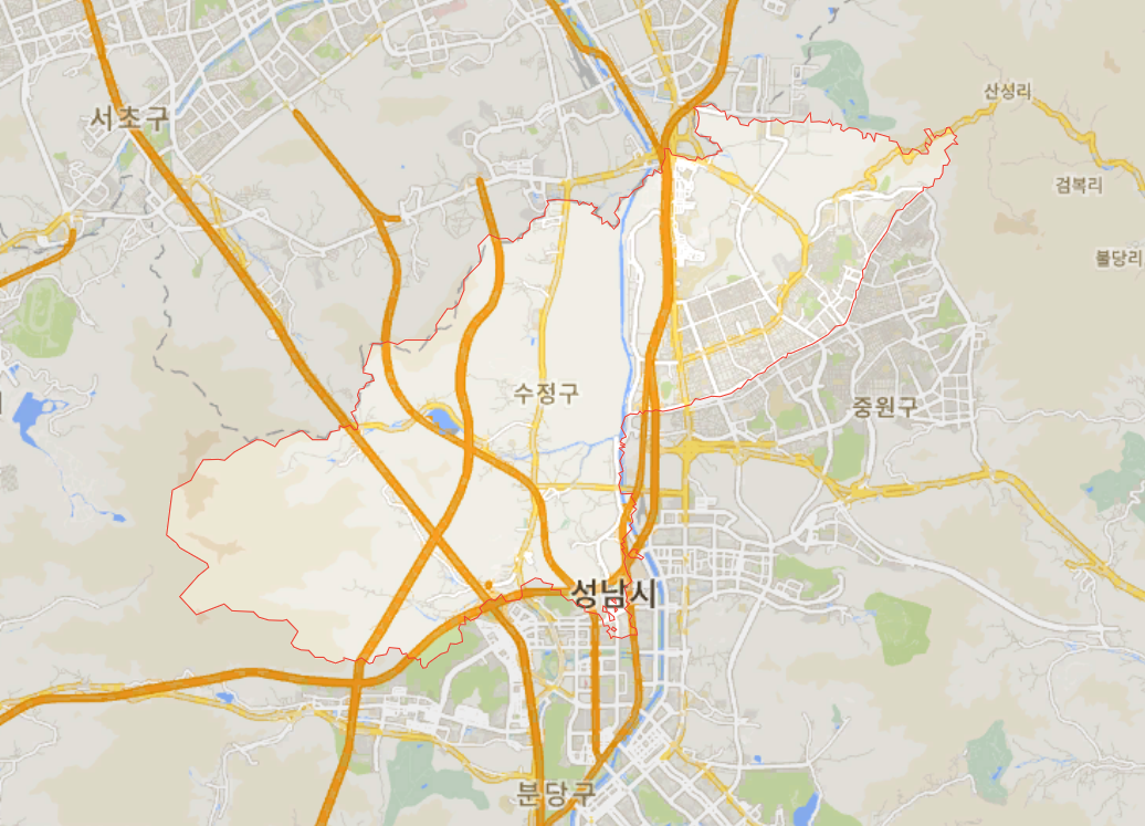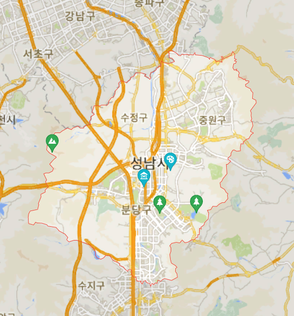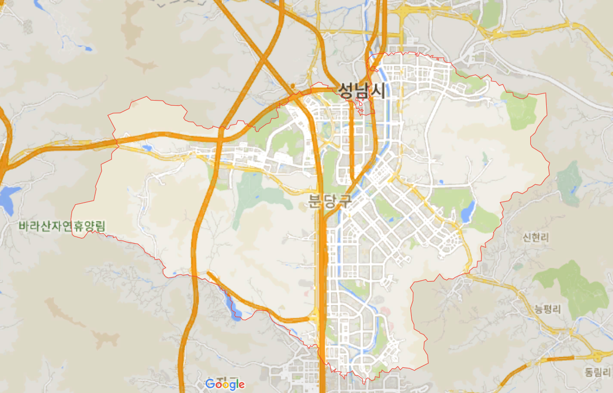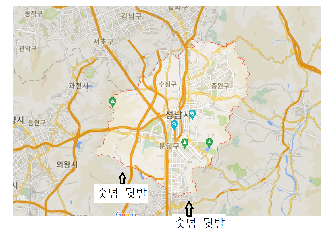 여러분들 아래 성남시 지도를 찬찬히 개가 짝짓기 한다고 생각하고선 훌터보면 분명 그렇게 보일 것입니다